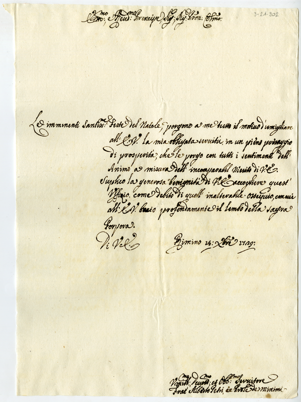 Lettera di Alberto Petri al cardinale Annibale Albani (1729 dicembre 15)