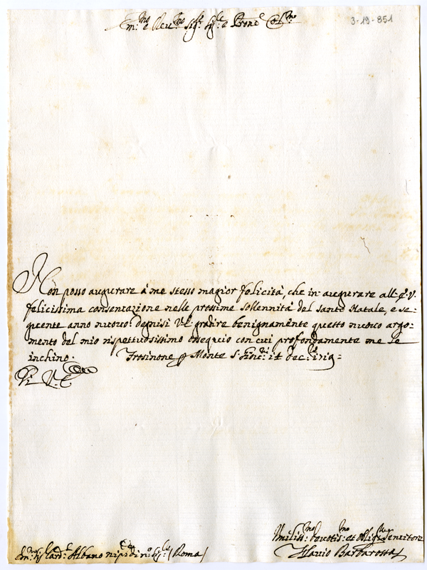 Lettera di Flavio Barbarossa al cardinale Annibale Albani (1719 dicembre 14)