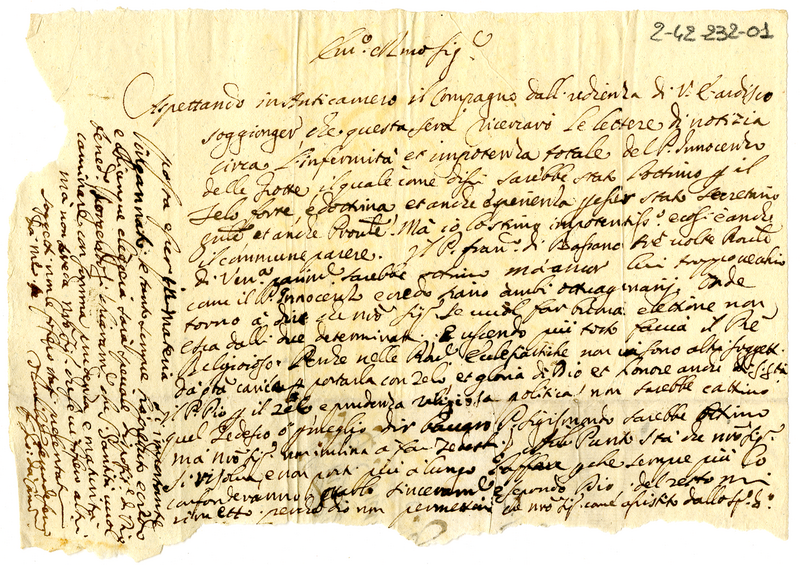 Biglietto di fra Giovanni di Canosa ad un cardinale (1700-1721)