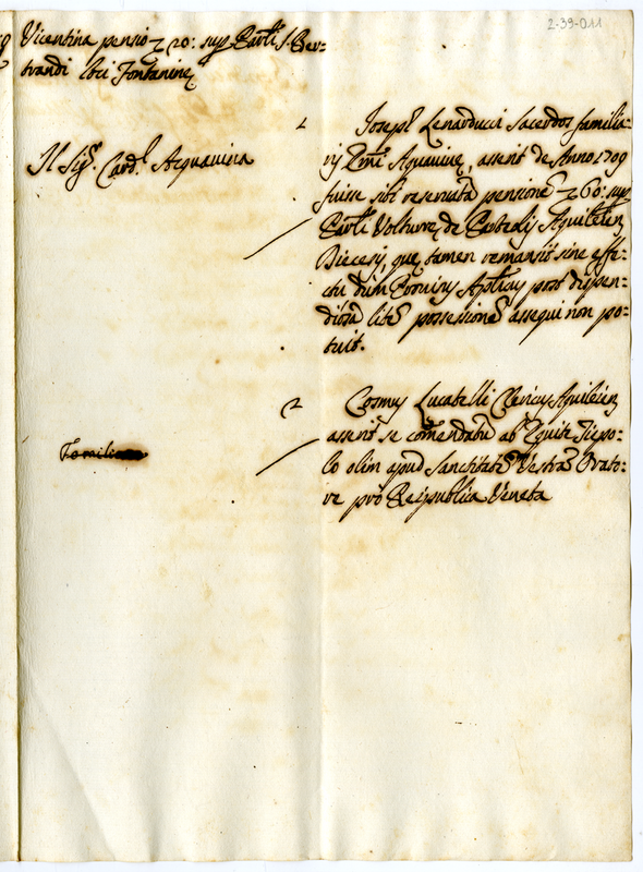 Pensione di scudi 20 sulla chiesa parrocchiale di San Bertrando di Fontanine di Vicenza (1700-1721)