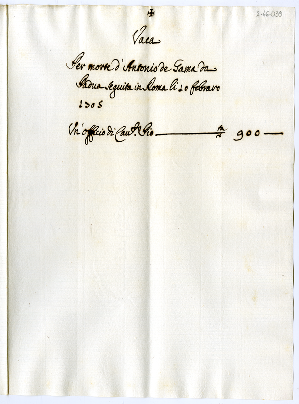 Canonicato vacante per morte di Antonio de Gama (1705 febbraio 10)