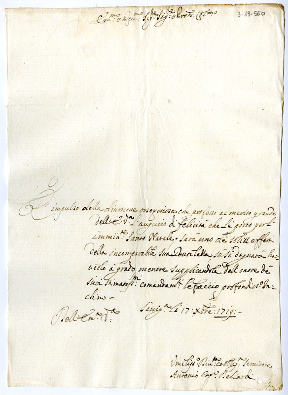 Lettera di Antonio Beliardi ad Annibale Albani (1719 dicembre 17)