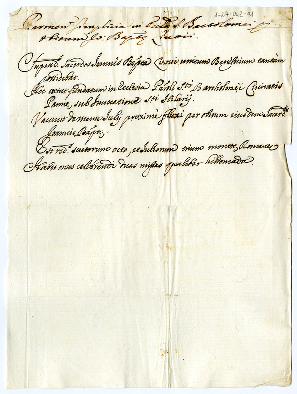 Benefici semplici della chiesa di San Bartolomeo vacanti per morte di Giovanni Battista Linovi (1699)