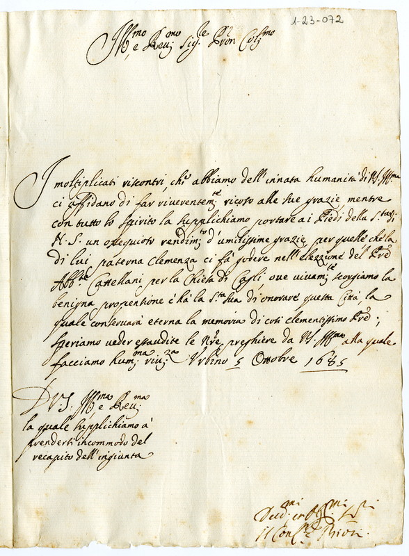Lettera del gonfaloniere e priori a Giovanni Francesco Albani (1685 ottobre 5)