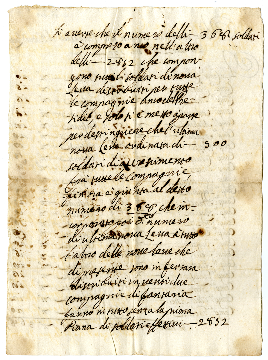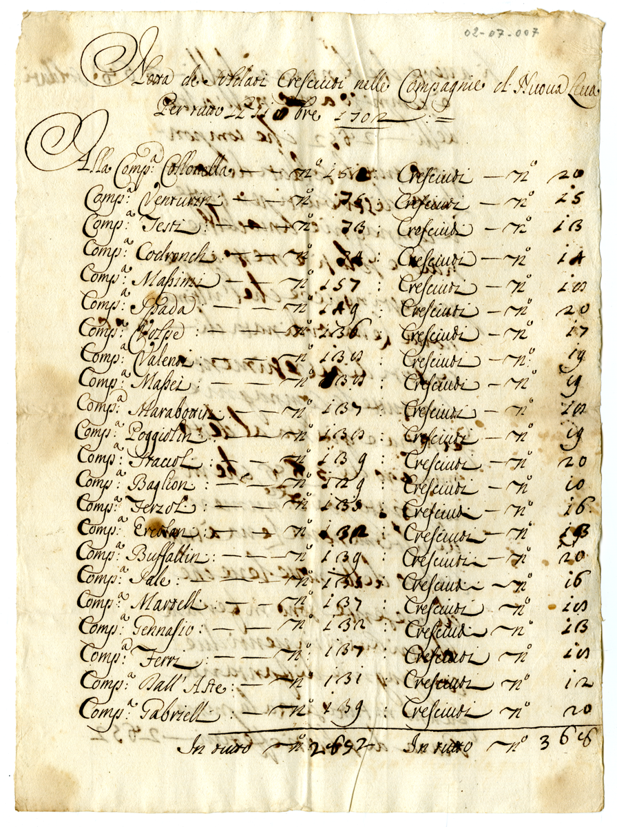 Nota de soldati cresciuti nelle Compagnie di Nuova leva per tutto li 11 ottobre 1702