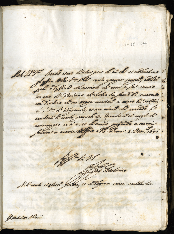 Lettera del cardinale Barberini Francesco senior a Malatesta Albani (1641 ottobre 5)