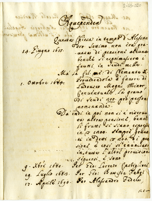 Frutti e pensioni sulla chiesa di Acquapendente (1700-1721)