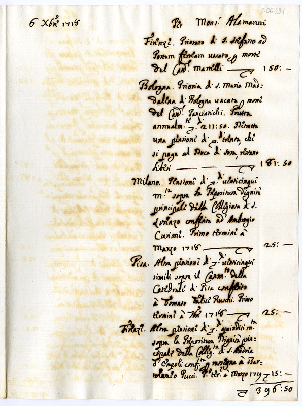 Pensioni a Monsignor Alamanni (1718 dicembre 6)