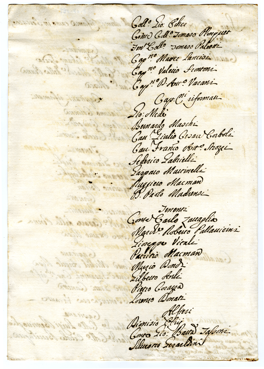 Stato degli Officiali compresi nell'ultima riforma tanto in Ferrara che in Forte Urbano. Foglio C (1700-1721)