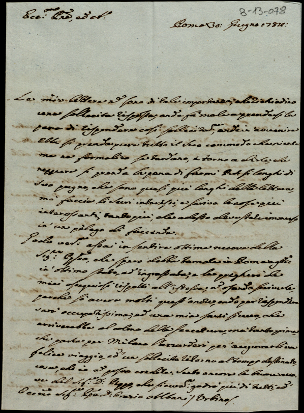 Lettere diverse ricevute in Colbordolo, Pesaro e Senigallia nel 1784