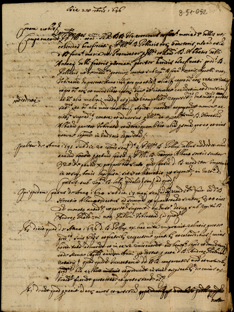 Scritture diverse appartenenti a liti e ad altri interessi domestici della Casa dei signori Albani