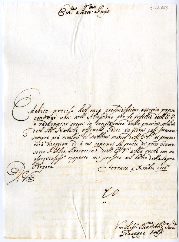 Lettera di Giuseppe Folfi al cardinale Annibale Albani (1716 dicembre 5)