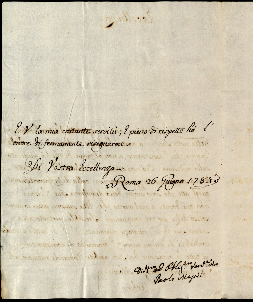 Lettere diverse ricevute in Colbordolo, Pesaro e Senigallia nel 1784