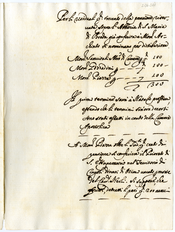 Sulle pensioni a Monsignor Archinto e Monsignor Piazza (1700-1721)