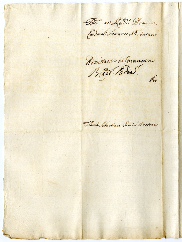 Lettera di Tommaso Sebastiano al cardinale Panciatici (1691-1700)
