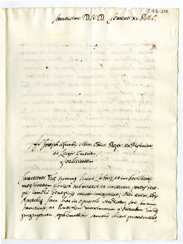 Lettera di fra Giuseppe da Fondi a papa Clemente XI (1700-1721)