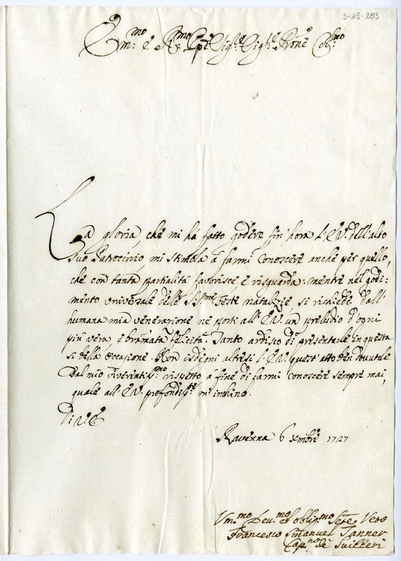Lettera di Francesco Emanuel Tanner al cardinale Annibale Albani (1727 dicembre 6)