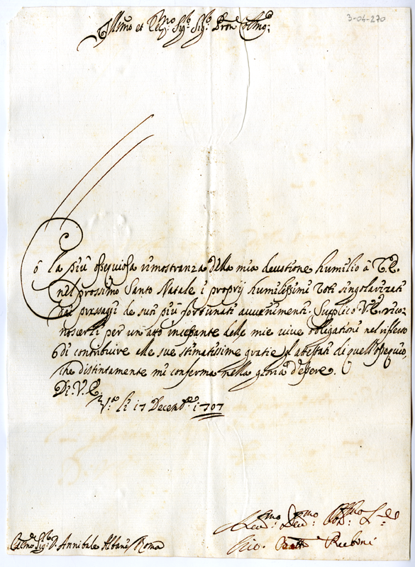 Lettera di Giovanni Battista Rubini ad Annibale Albani (1707 dicembre 17)