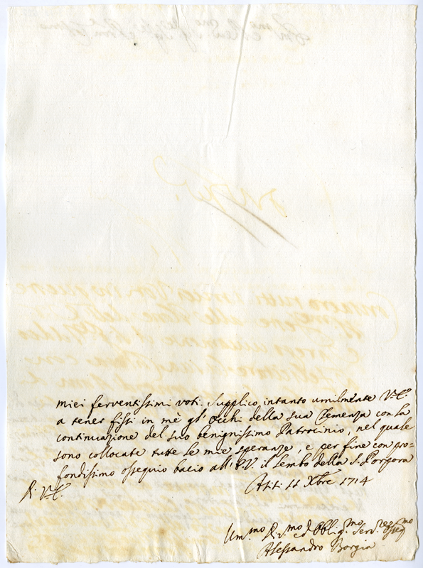 Lettera di Alessandro Borgia al cardinale Annibale Albani (1714 dicembre 11)