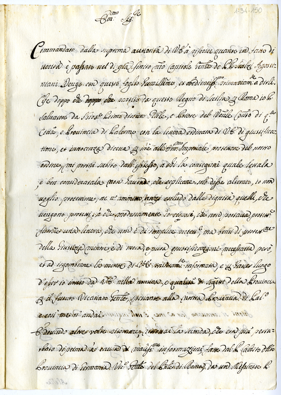 Lettera di frate Salvatore da San Giuseppe priore scalzo agostiniano ad un cardinale (1700-1721)