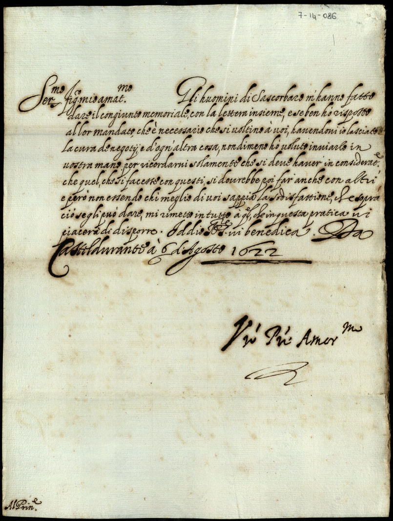 Lettere, memoriali al Serenissimo Principe d'Urbino appartenenti alla carica di segretario di Giustizia
