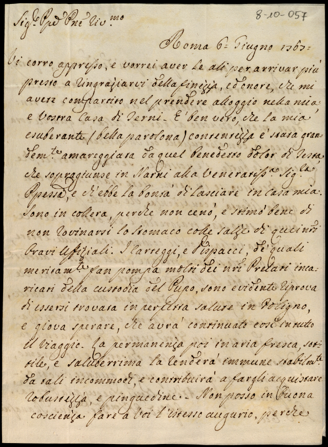 3. Lettere ricevute in Urbino dal Signor Principe Orazio Albani ultimo di questo nome nell'anno 1767