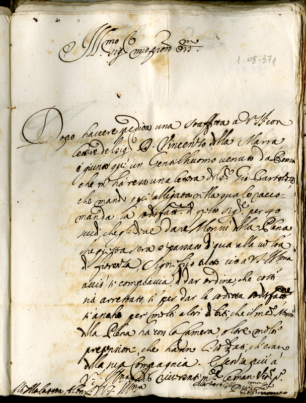 Lettera di monsignor Borromeo Giberto a Malatesta Albani (1644 marzo 1)