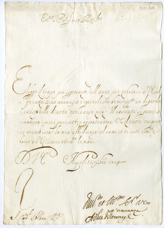 Lettera al cardinale Annibale Albani (1714 dicembre 15)