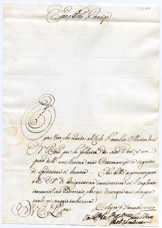 Lettera di Paolo Zambeccari al cardinale Annibale Albani (1720 dicembre 7)