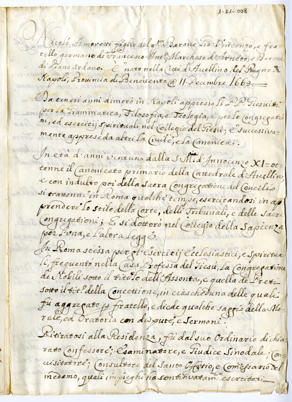 Requisiti e titoli di Nicolò Amoretti (1663-1703 ca.)