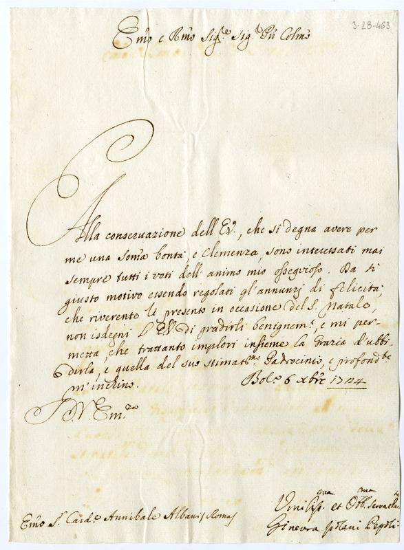 Lettera di Ginevra Isolani Pepoli al cardinale Annibale Albani (1724 dicembre 6)