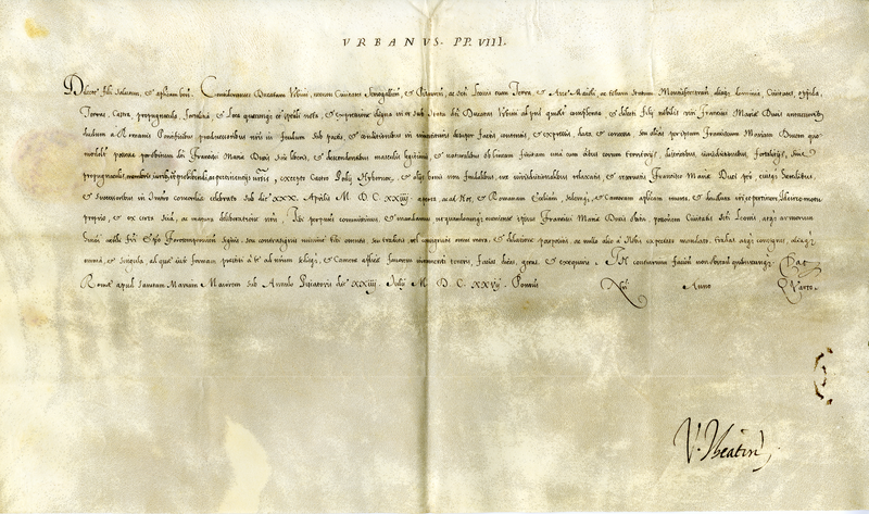 Breve di papa Urbano VIII al gonfaloniere delle armi di S. Leone