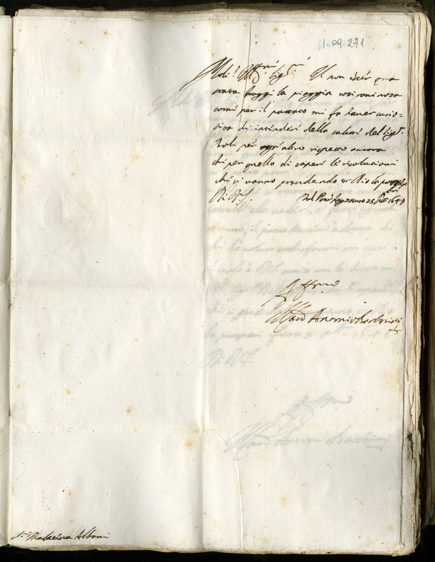 Lettera del cardinale Barberini Antonio senior a Malatesta Albani (1643 settembre 25)