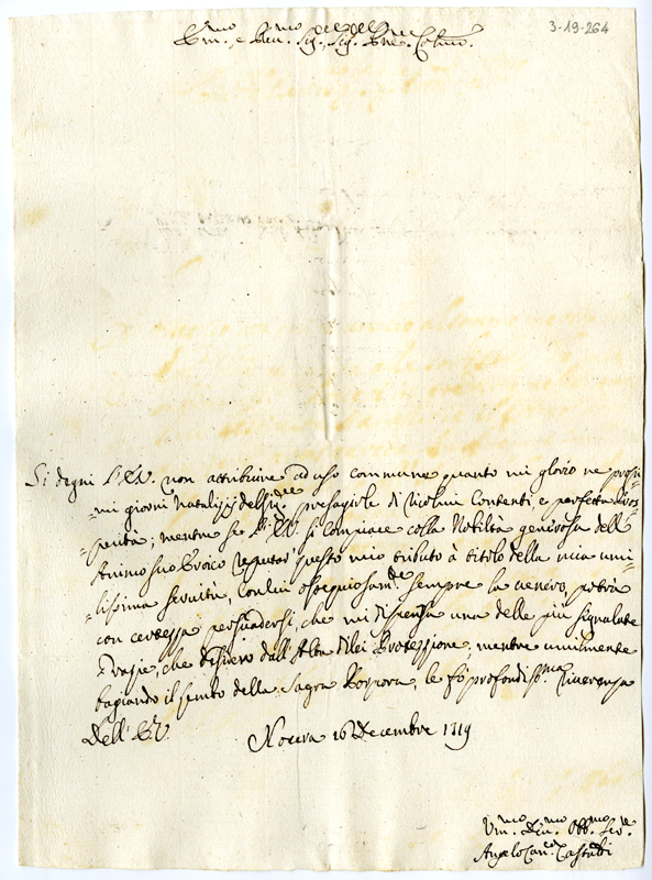 Lettera di Angelo canonico Castaldi ad Annibale Albani (1719 dicembre 26)
