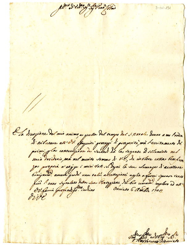 Lettera del vescovo di Orvieto ad Annibale Albani (1704 dicembre 6)