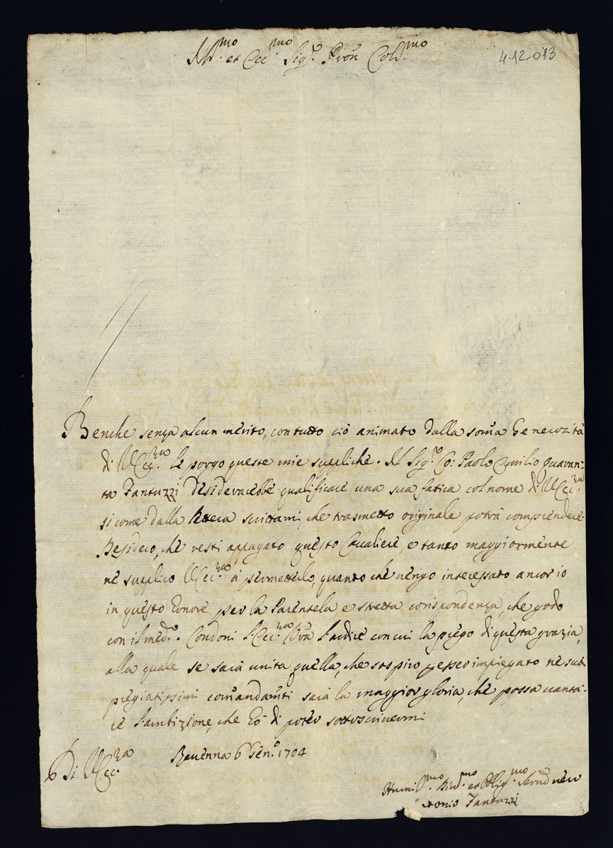 Lettere di negozio e di complimento all'Illustrissima Eccellenza dell'anno 1704. Semestre primo
