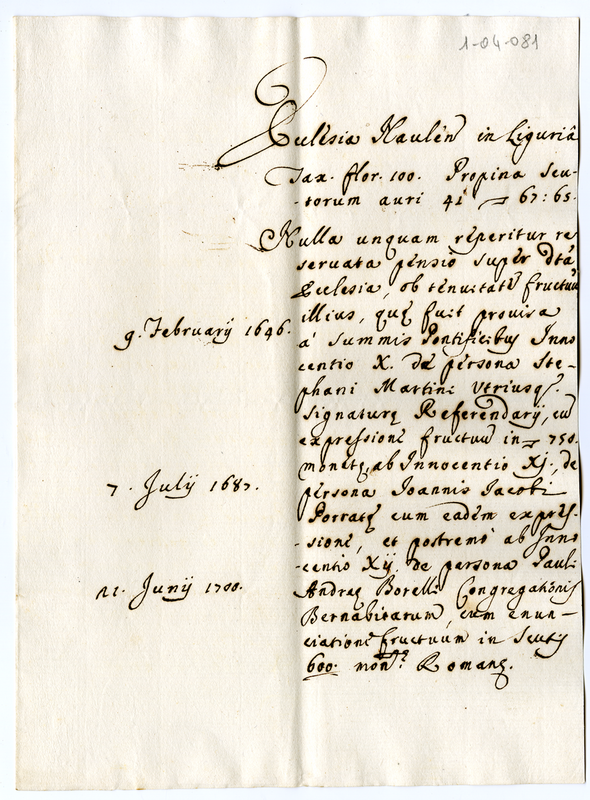 Rendite di alcune chiese dello stato genovese