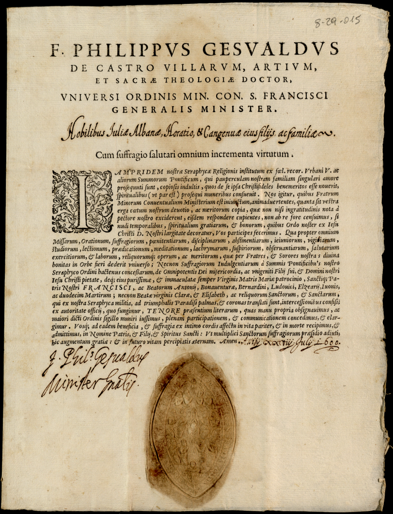 Figliolanze di religiosi, patenti diverse, famigliarità, licenze e prerogative a diversi dell'eccellentissima Casa Albani