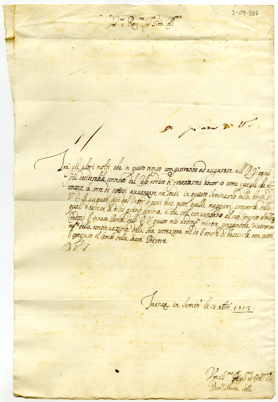 Lettera di Domenico Maria Sella al cardinale Annibale Albani (1713 dicembre 13)