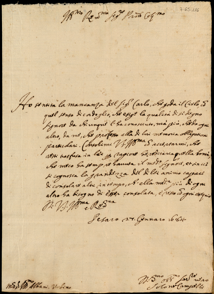 Lettere a Giovanni Francesco Albani per la morte del padre Carlo