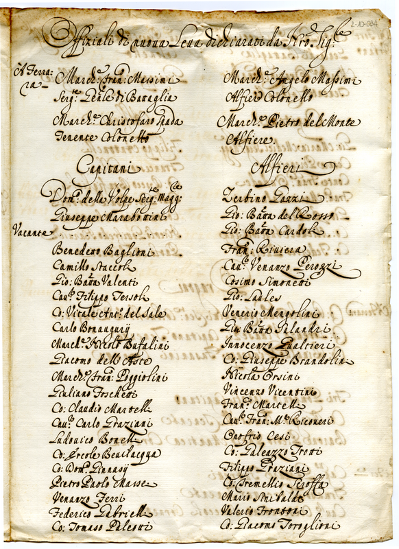 4. Officiali di nuova Leva dichiarati da Nostro Signore (1700-1721)