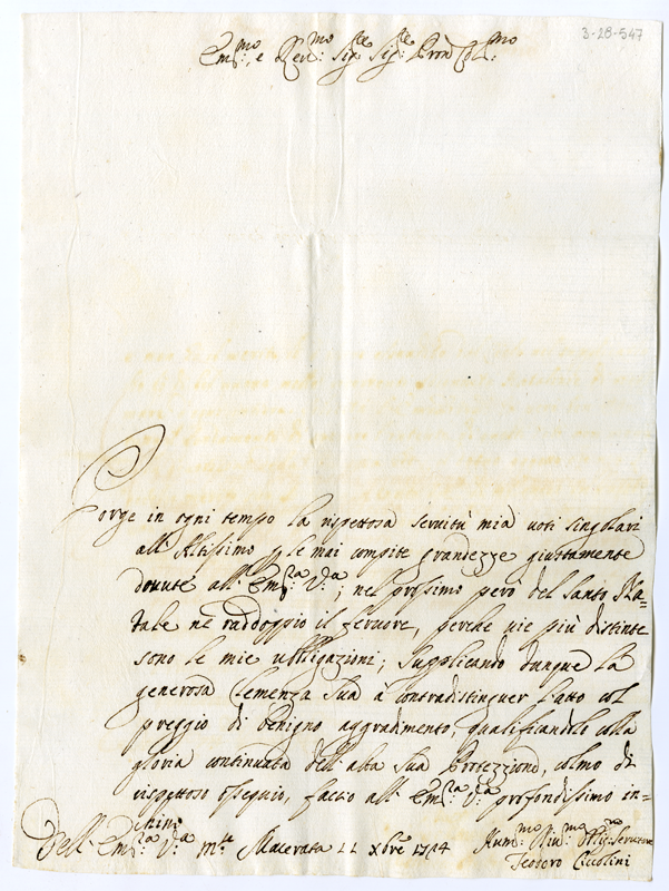 Lettera di Teodoro Ciccolini al cardinale Annibale Albani (1724 dicembre 11)
