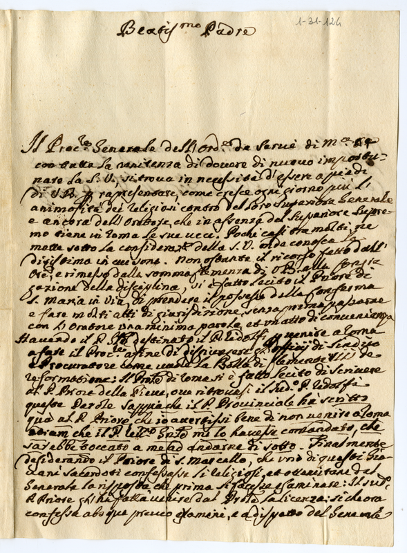 Lettera del padre generale dei Servi di Maria a papa Clemente XI (1700-1721)