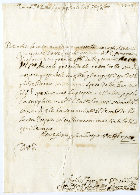 Lettera di Francesco Antonio Maria Spinelli al cardinale Annibale Albani (1720 dicembre 18)