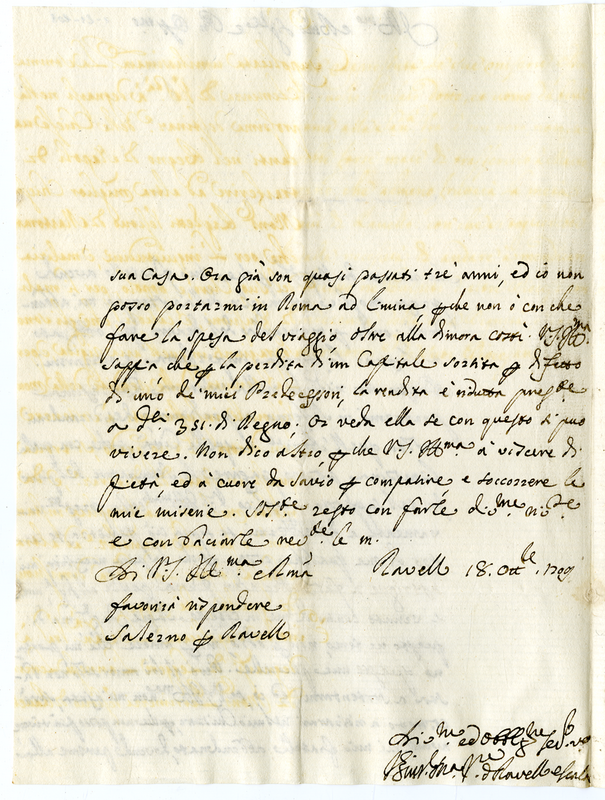 Lettera del vescovo di Ravello e Scala (1709 ottobre 18)