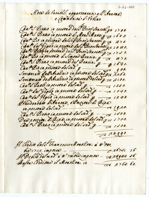 Nota de Vacabili appartenenti all'Annona e Communità d'Urbino (1712)