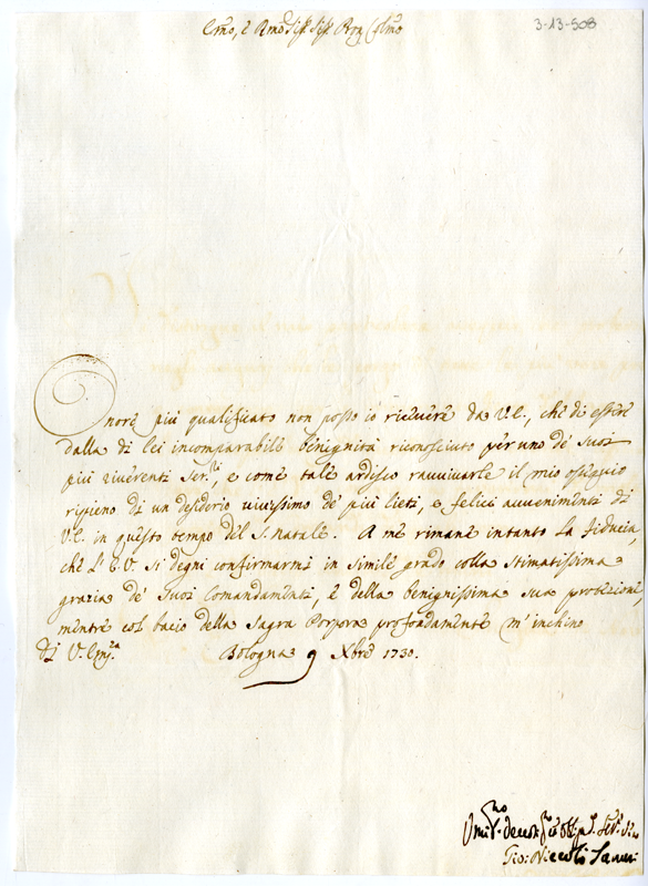 Lettera di Giovanni Nicolò Tanari al cardinale Annibale Albani (1730 dicembre 9)