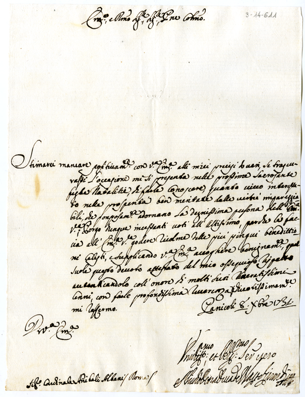 Lettera di Nicola Petra duca di Vastogirardi al cardinale Annibale Albani (1731 dicembre 8)