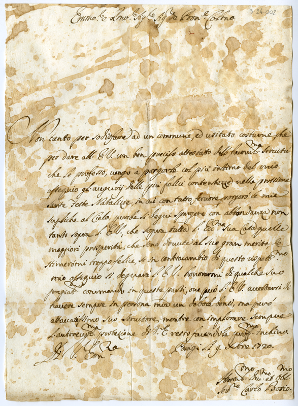 Lettera di Carlo Borio al cardinale Annibale Albani (1720 dicembre 9)