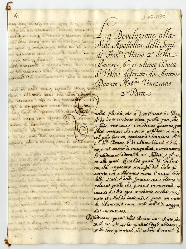 La Devoluzione alla Sede Apostolica delli Stati di Francesco Maria 2. della Rovere 6. et ultimo Duca d'Urbino descritta da Antonio Donato nobile veneziano. 2. parte